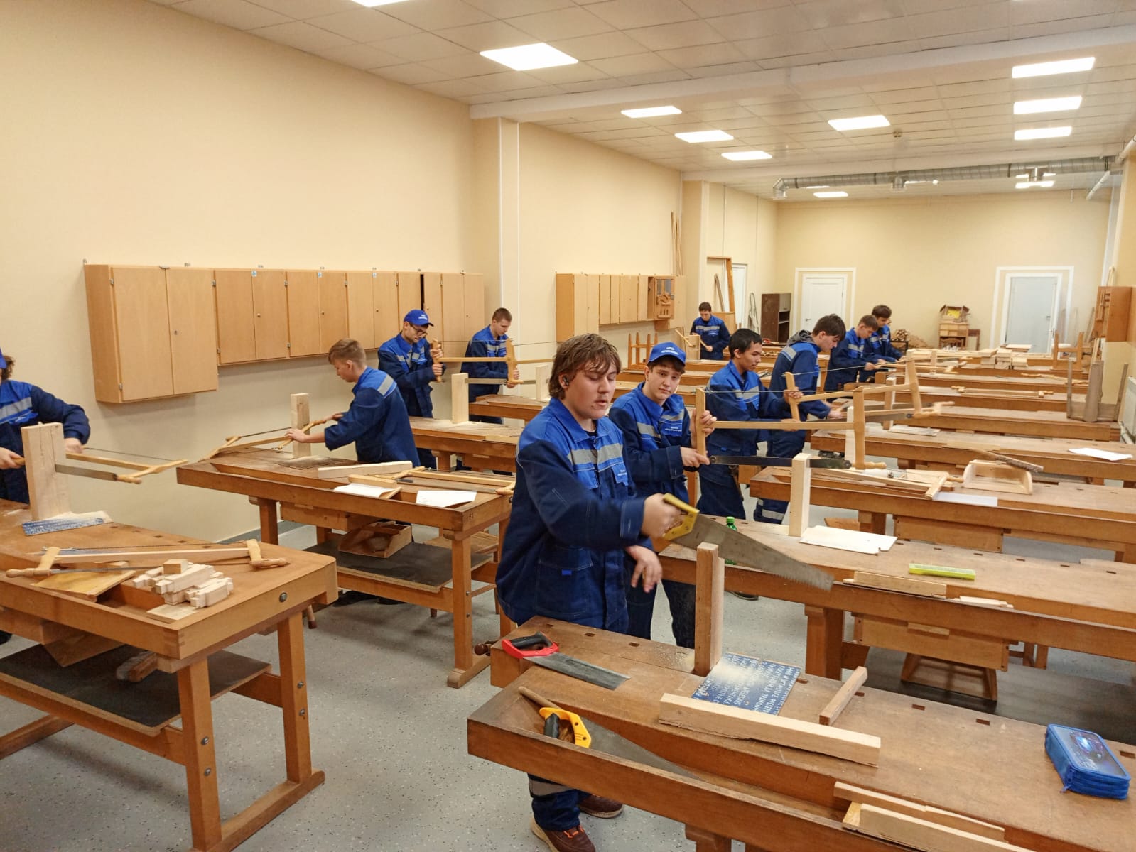 Обучающиеся группы 011 профессия "Столяр" на практических занятиях.