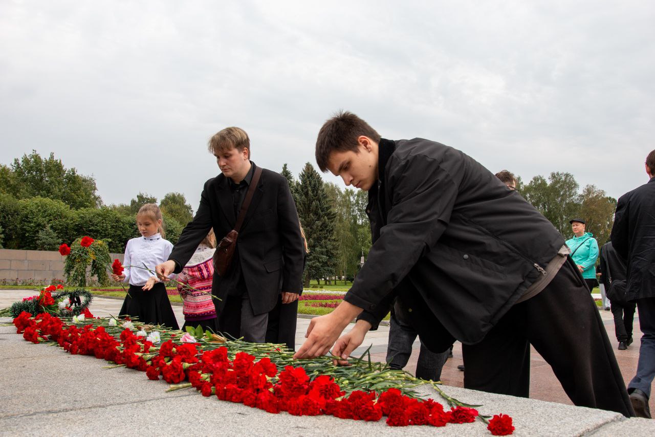 Студенты колледжа возложили цветы к монументу Мать-Родина на Пискаревском мемориальном кладбище