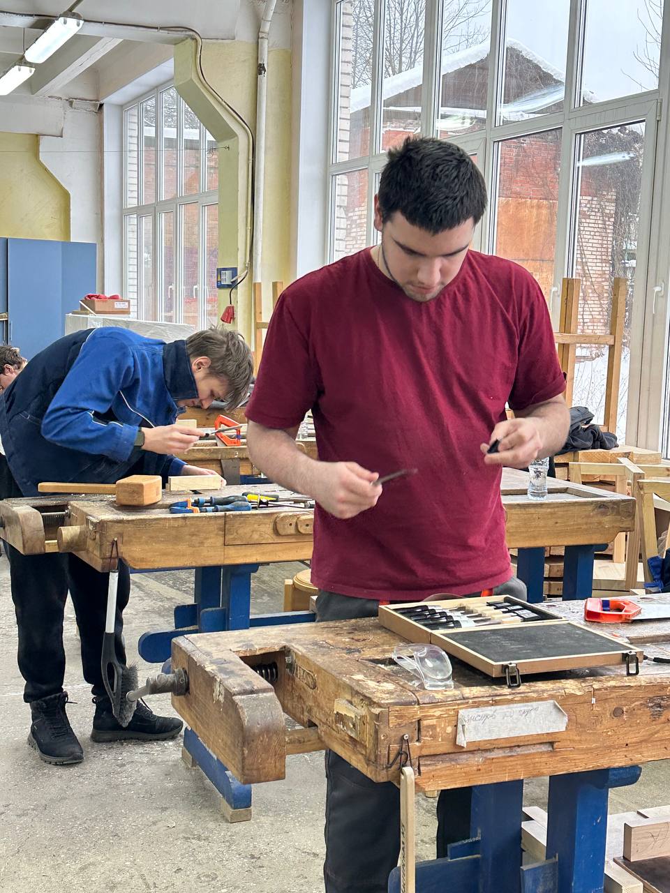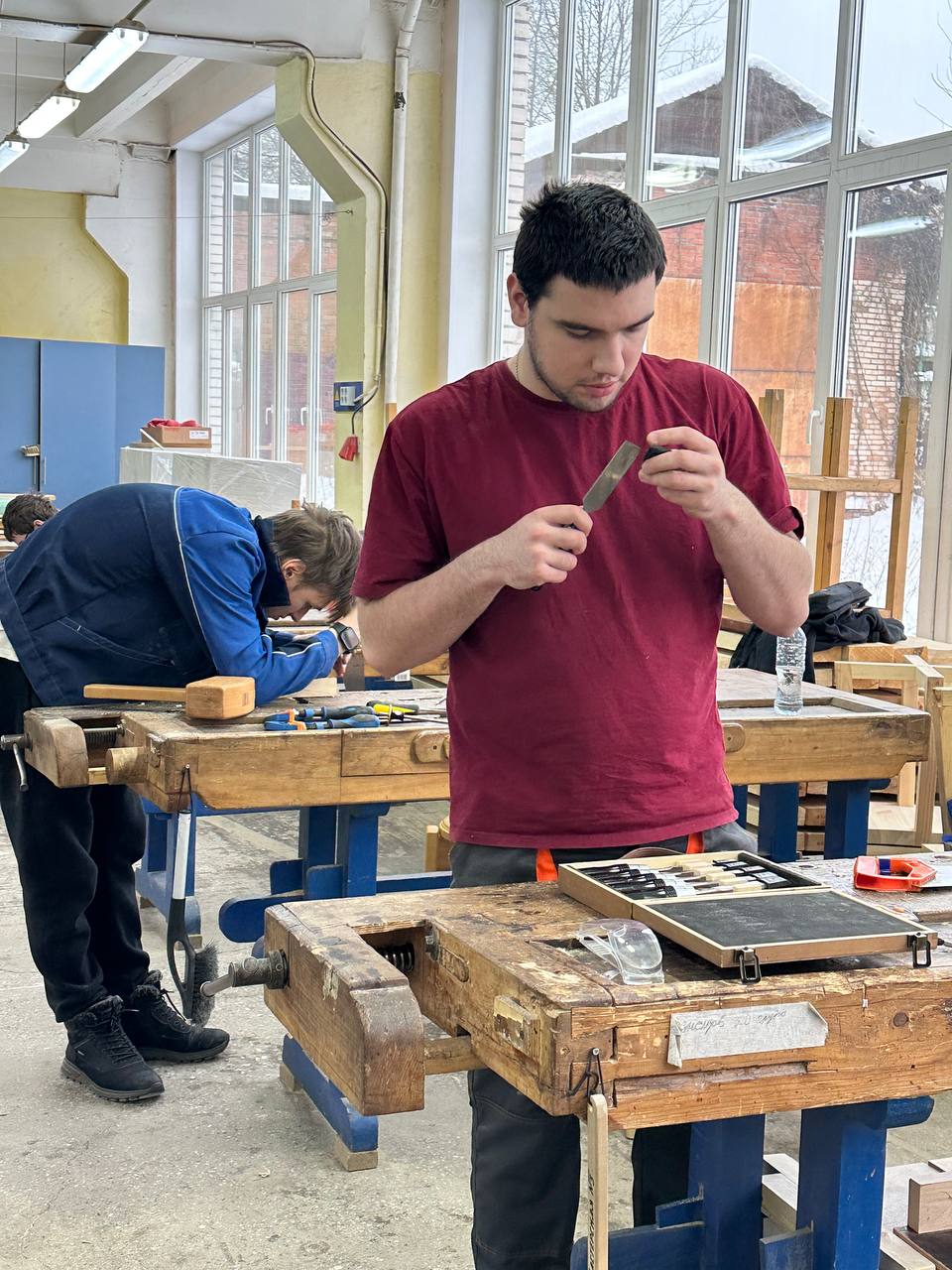Обучающиеся группы 20 профессия "Столяр" на практических занятиях