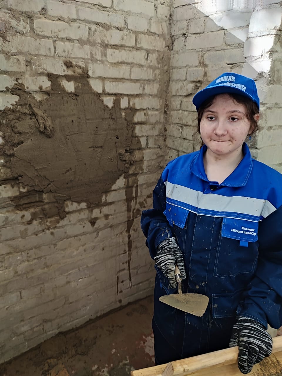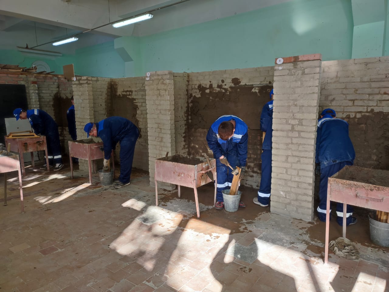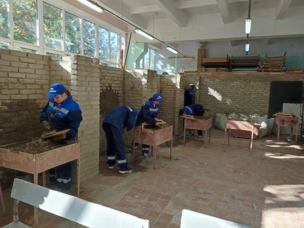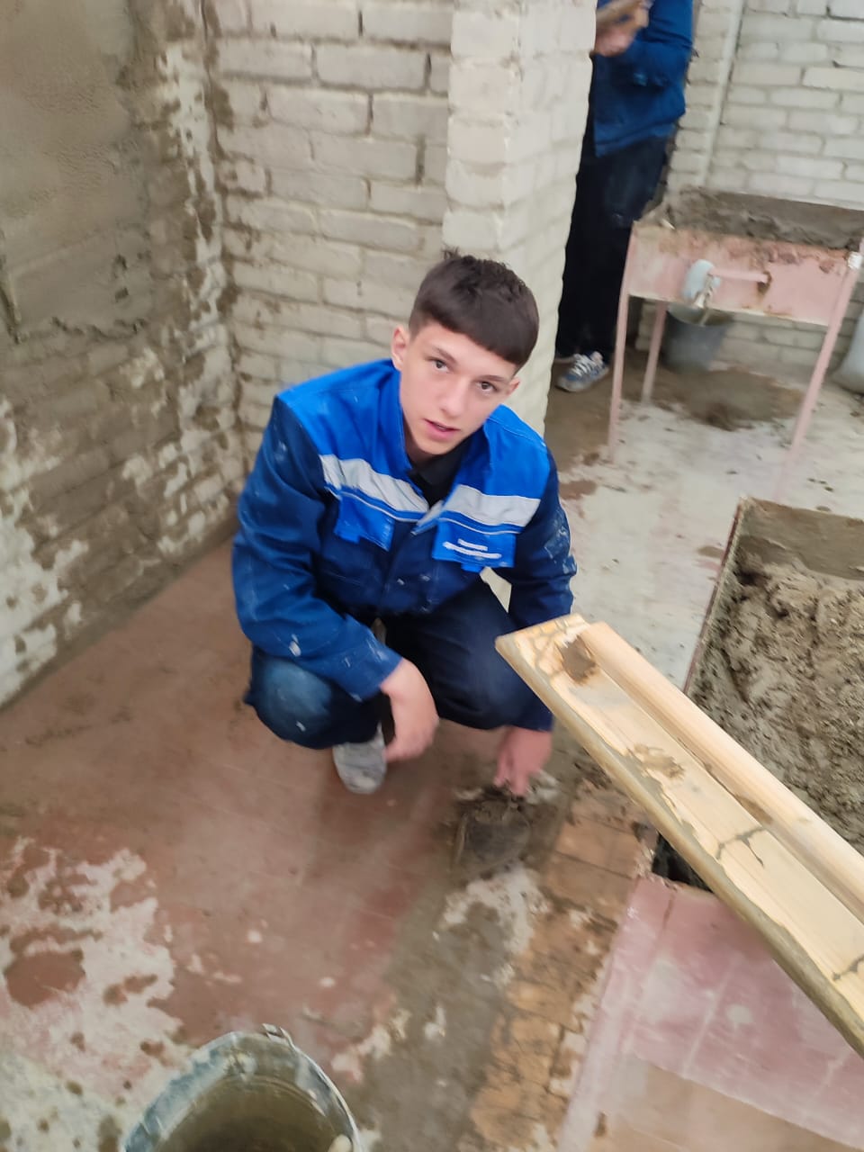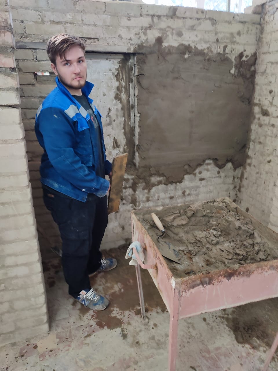 Группа 14 по профессии "Маляр", под чутким руководством мастера производственного обучения Епишиной Капитолины Павловны, на практических занятиях успешно осваивают навыки сбрасывания и выравнивания штукатурного слоя.